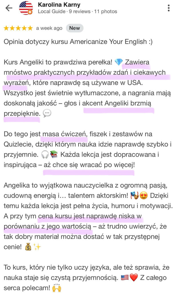 Co więcej, jako osoba wychowana w Nowym Jorku, która regularnie odwiedza USA, wyselekcjonowałam słownictwo, które jest naprawdę używane przez native speakerów na co dzień. Tego nie nauczysz się w szkole!
