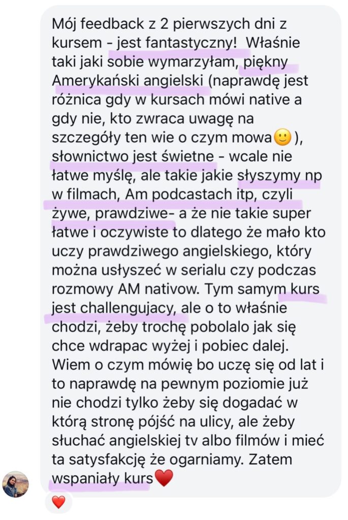 Kurs Americanize Your English jest dokładnie tym, czego potrzebujesz. Stworzyłam go, żeby pomóc Ci przełamać barierę w mówieniu i nabrać pewności siebie w rozmowach po angielsku.